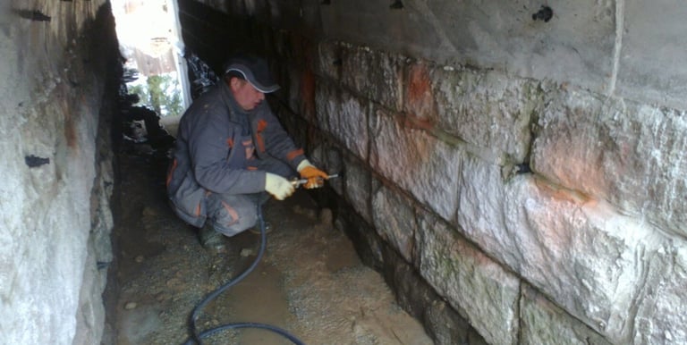 Injecteren van speciale harsen om beton te versterken en waterdicht te maken.